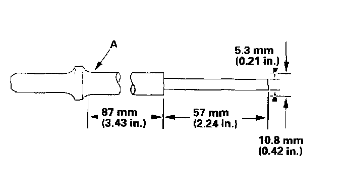 2. As illustrated, use a commercially available air impact valve guide driver (A) modified to fit the diameter of the valve guides. In most cases, the same procedure can be done using the special tool and a conventional hammer.