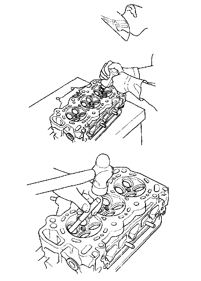 6. Turn the head over, and drive the guide out toward the camshaft side of the head.