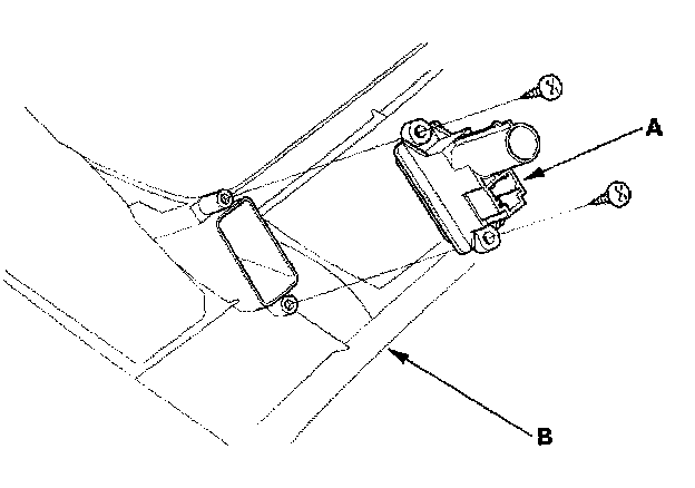 2. Remove the self-tapping screws and the in-car temperature sensor (A) from the driver's dashboard lower cover (B).