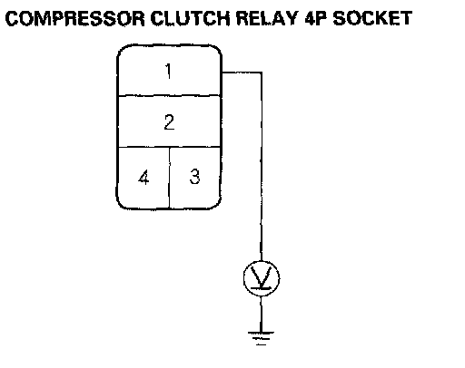 4. Measure the voltage between the No.1 terminal of the compressor clutch relay 4P socket and body ground.