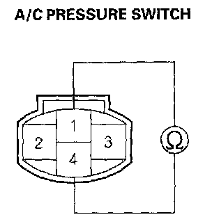 6. Check for continuity between the No.1 and No.4 terminals of the A/C pressure switch.