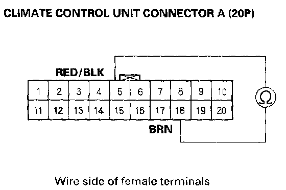 12. Measure the evaporator sensor resistance between the No.5 and No.18 terminals of climate control unit connector A (20P).