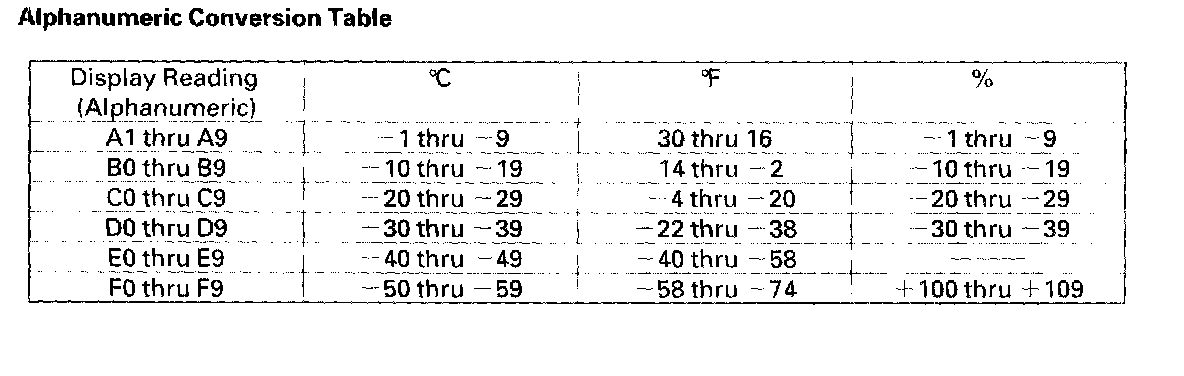 - The sensor values will be displayed in degrees Celsius (°C) or an alphanumeric code. Use the chart to convert the value to degrees Fahrenheit (°F).