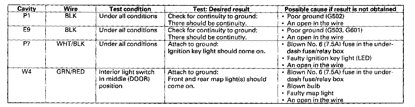 Control Unit Input TestNOTE: Make sure the ignition switch is OFF before disconnecting the under-dash fuse/relay box connectors.