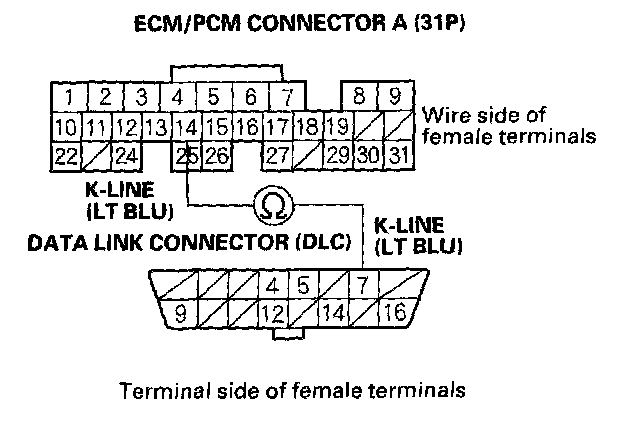 NO - Repair open in the wire between DLC terminal No.7 and the ECM/PCM (A14). After repairing the wire, check for Temporary DTCs or DTCs with the HDS and go to the indicated DTC's Troubleshooting.