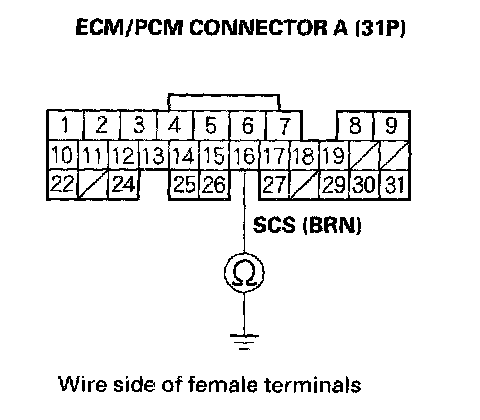 16. Check for continuity between ECM/PCM connector terminal A16 and body ground.