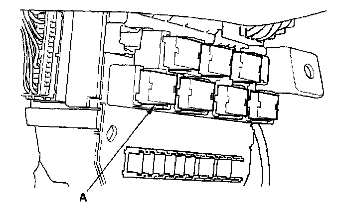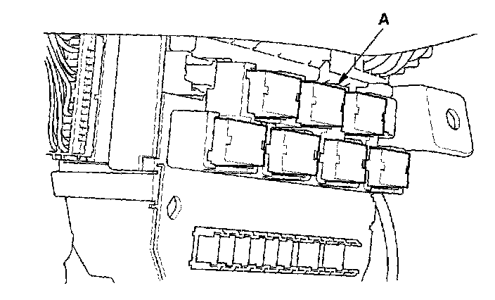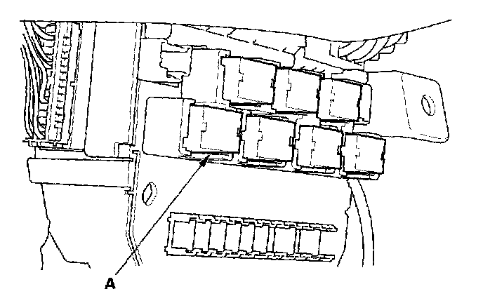26. Remove the left kick panel, then remove the PGM-FI main relay 1 (FI MAIN) (A) from the under-hood fuse/relay box.