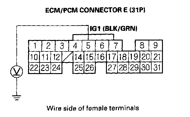 37. Check for continuity between ECM/PCM connector terminal E5 and body ground.
