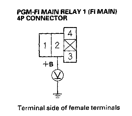 59. Measure voltage between PGM-FI main relay 1 4P connector terminal No.2 and body ground.