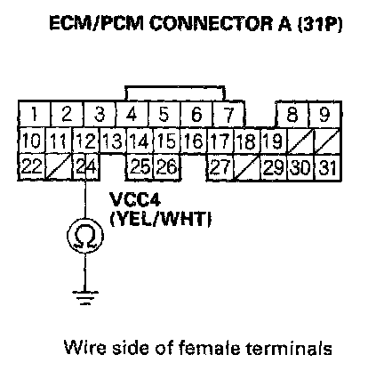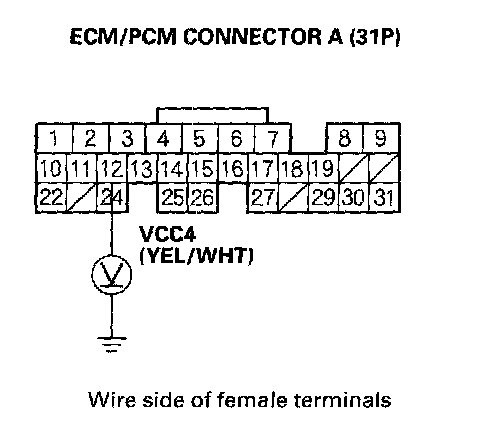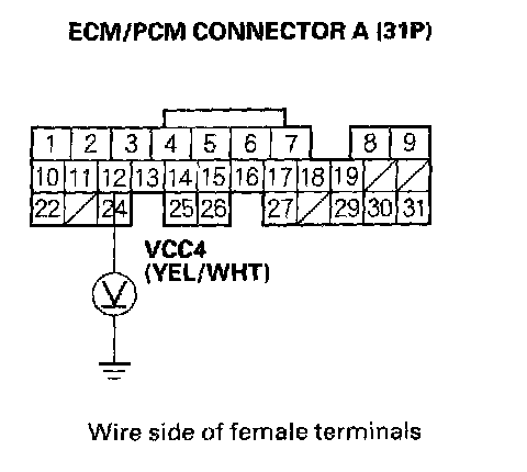 86. Measure voltage between ECM/PCM connector terminal A12 and body ground.