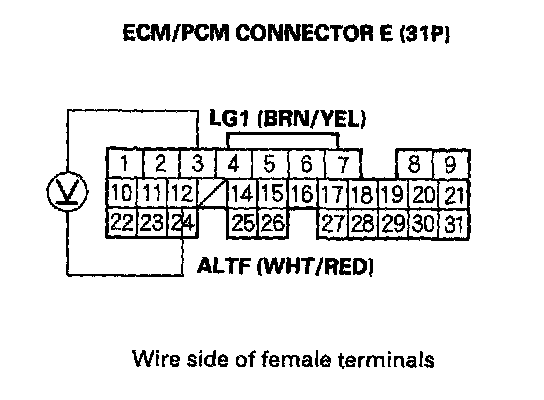 7. Measure voltage between ECM/PCM connector terminals E3 and E12.