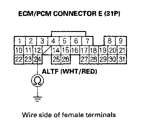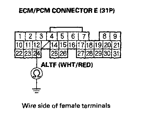 16. Check for continuity between body ground and ECM/PCM connector terminal E12.
