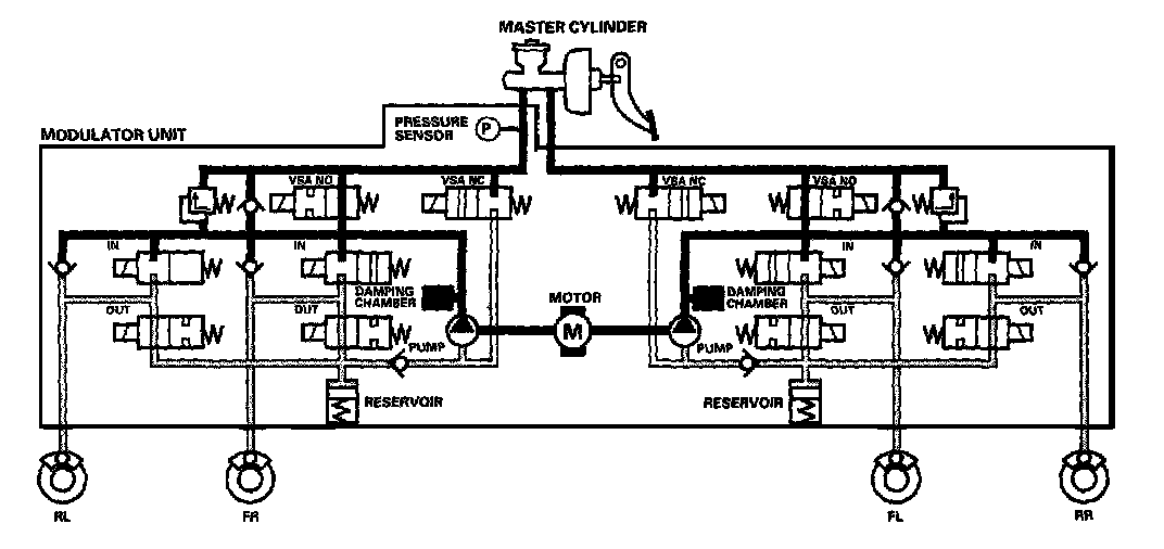 Front and rear caliper fluid is retained by the inlet valve and outlet valve.