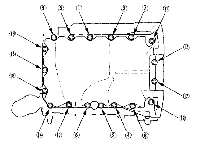 Tighten the bolts in two or three steps. In the final step, tighten all bolts, in sequence, to 12 Nm (1.2 kgf-cm, 8.7 ft. lbs.)