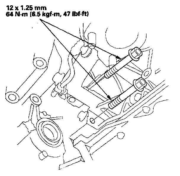 19. Loosely install both of the new both mid-mount mounting bolts.