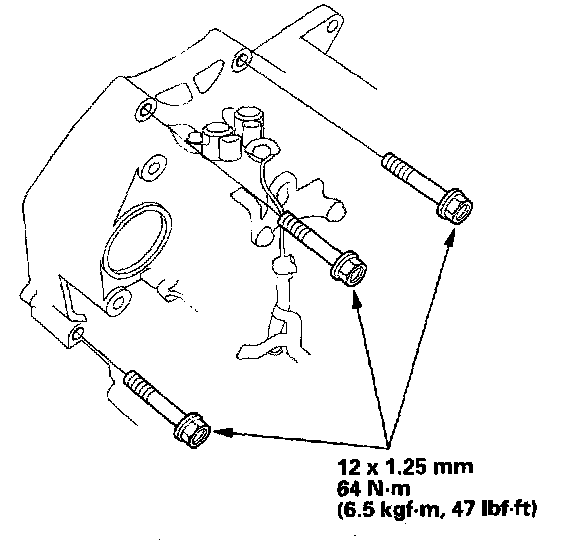 5. Attach the transmission to the engine, then install the transmission housing mounting bolts.