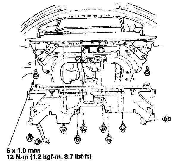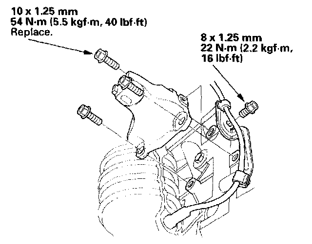 8. Install the front mount bracket with the new bolts, and install the harness clamp on the mount bracket.