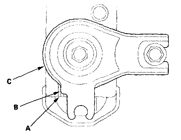 27. Install the lock bolt (C) with a new lock washer (D), then bend the lock washer tab against the bolt head.