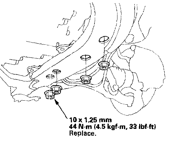 23. Install the new transmission lower mount nuts.