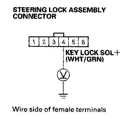 5. Check for the voltage between the No. 4 terminal of the steering lock assembly connector and body ground.