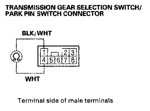 9. Check for continuity between park pin switch connector terminals No. 1 and No. 4 while pushing the button of the shift lever in, and when released. is there continuity when pushing the button in, and no continuity when it's released?
