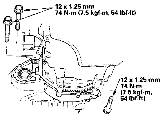 4. Install the transmission lower mounting bolts.