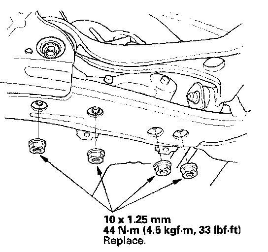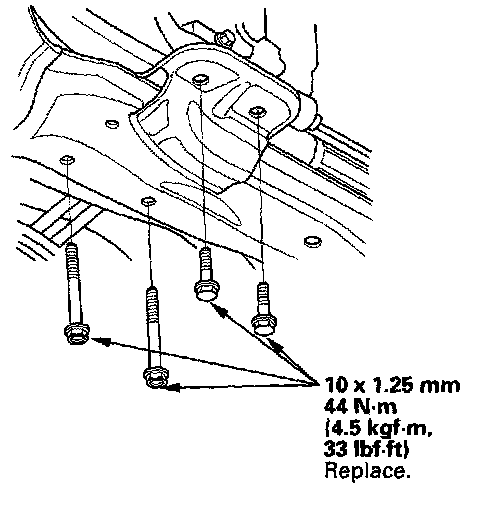 10. Install the middle subframe mounting bolts.