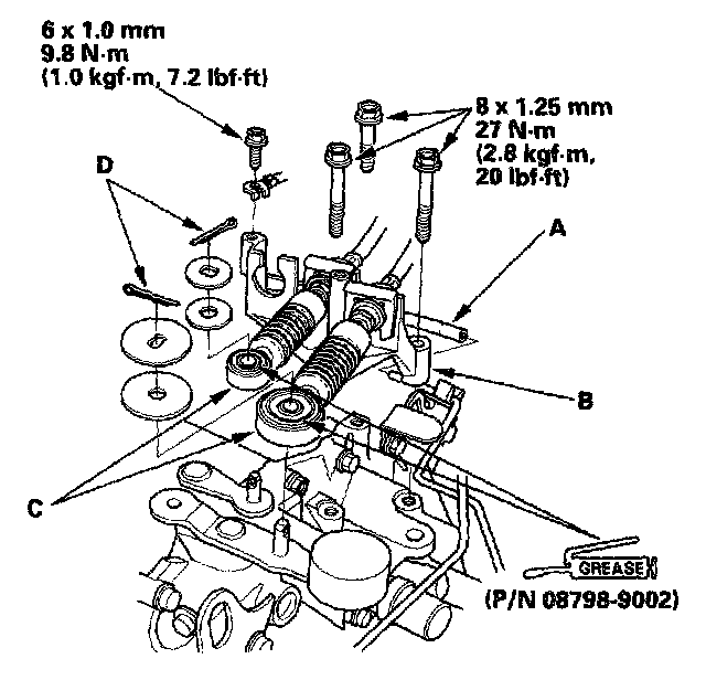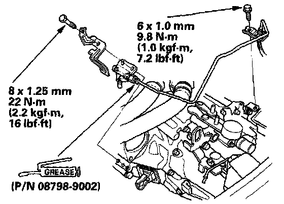 35. Apply super high temp urea grease P/N 08798-9002) to the end of the cylinder rod. Install the slave cylinder. Be careful not to bend the clutch line.