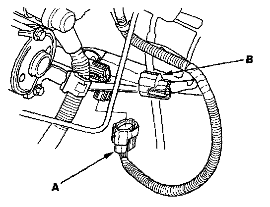 42. Connect the input shaft (mainshaft) speed sensor connector (A) and output shaft (countershaft) speed sensor connector (B).