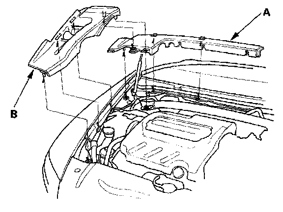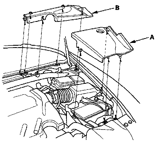 51. Install the bulkhead cover (A) and the intake manifold cover (B).