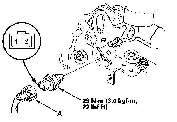 6. Check for continuity between the No. 1 and No. 2 terminals of the back-up light switch 2P connector. There should be continuity when the shift lever is in reverse.