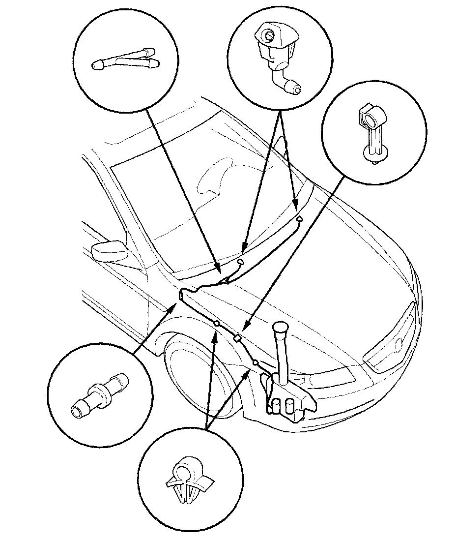 2. Remove the windshield washer nozzles and clips, then remove the tube.