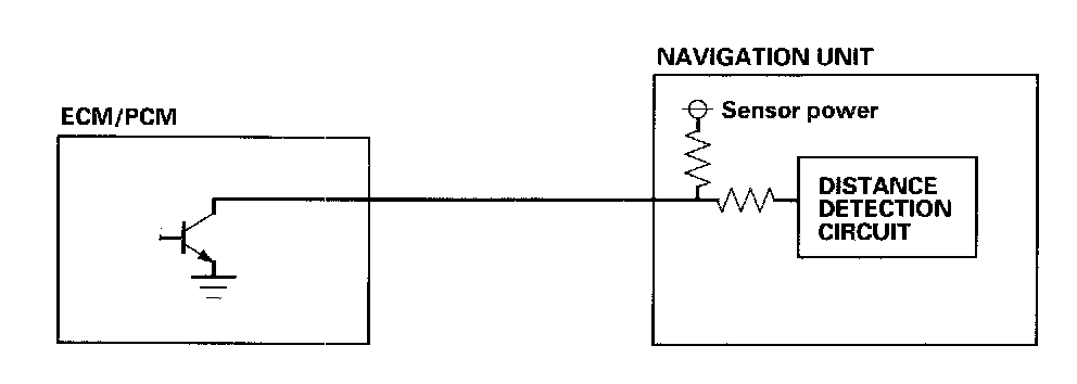 The navigation unit calculates the vehicle position (the driving direction and the current position) by receiving the directional change signals from the yaw rate sensor and the travel distance signals from the PCMs vehicle speed pulse (VSP) signal.