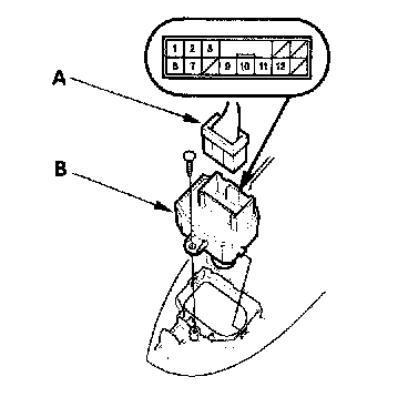 2. Disconnect the 13P connector (A) from the power mirror switch (B).