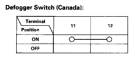 3. Check for continuity between the terminals in each switch position according to the table.
