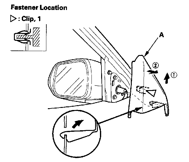 2. Carefully pry out the mirror mount cover (A) by hand in the sequence shown.
