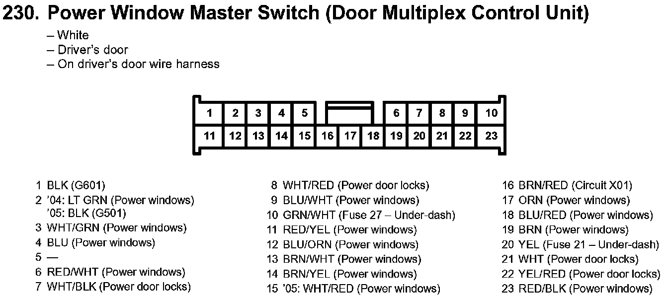 230. Power Window Master Switch (Door Multiplex Control Unit):