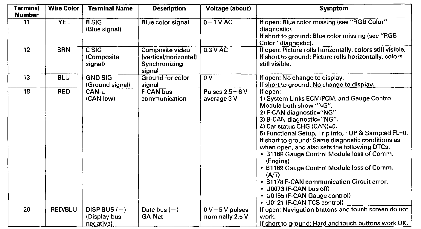 Navigation Unit Inputs And Outputs For Connector A (20P):