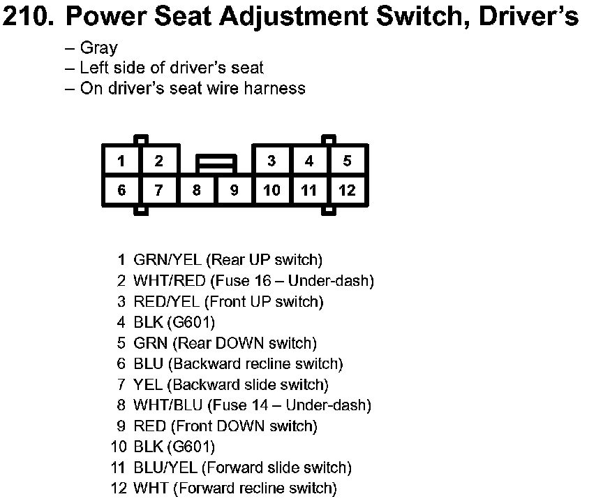 210. Power Seat Adjustement Switch, Driver's: