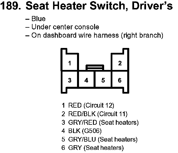189. Seat Heater Switch, Driver's: