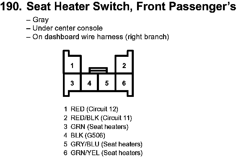190. Seat Heater Switch, Front Passenger's: