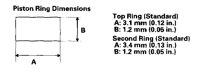 3. Clean all ring grooves thoroughly with a squared off broken ring or ring groove cleaner with a blade to fit the piston grooves. The top and 2nd ring grooves are 1.2 mm (0.05 inch) wide. The oil ring groove is 2.5 mm (0.10 inch) wide. File down a blade if necessary. Do not use a wire brush to clean the ring grooves, or cut the ring grooves deeper with the cleaning tools.