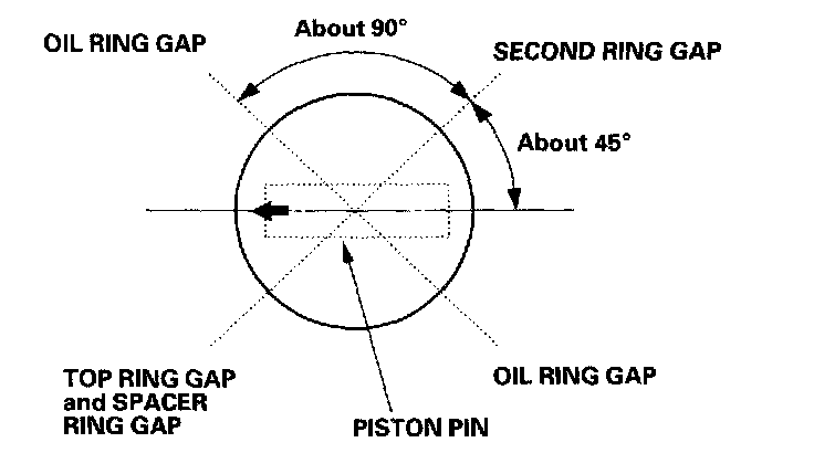 8. Position the ring end gaps as shown.