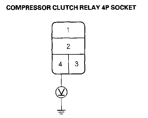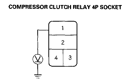 4. Measure the voltage between the No.1 terminal of the compressor clutch relay 4P socket and body ground.