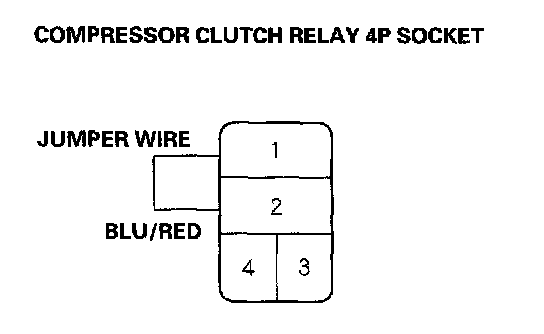 5. Connect the No.1 and No.2 terminals of the compressor clutch relay 4P socket with a jumper wire.