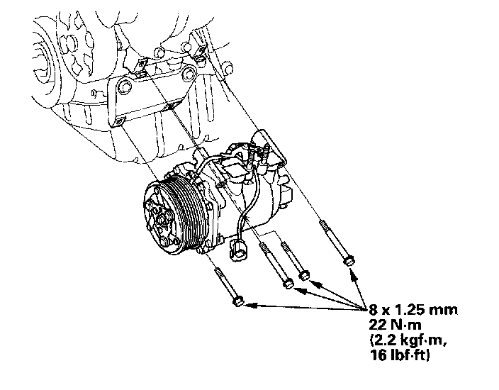 10. Install the compressor in the reverse order of removal, and note these items: