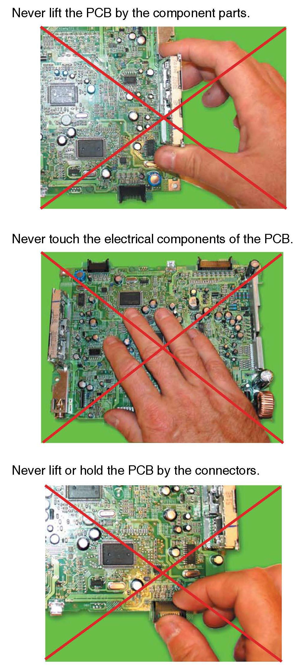 Static electricity can damage the components on the PCB. Always follow proper handling procedures.