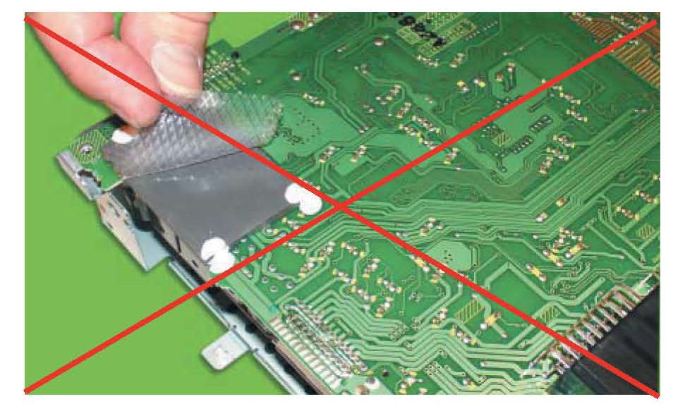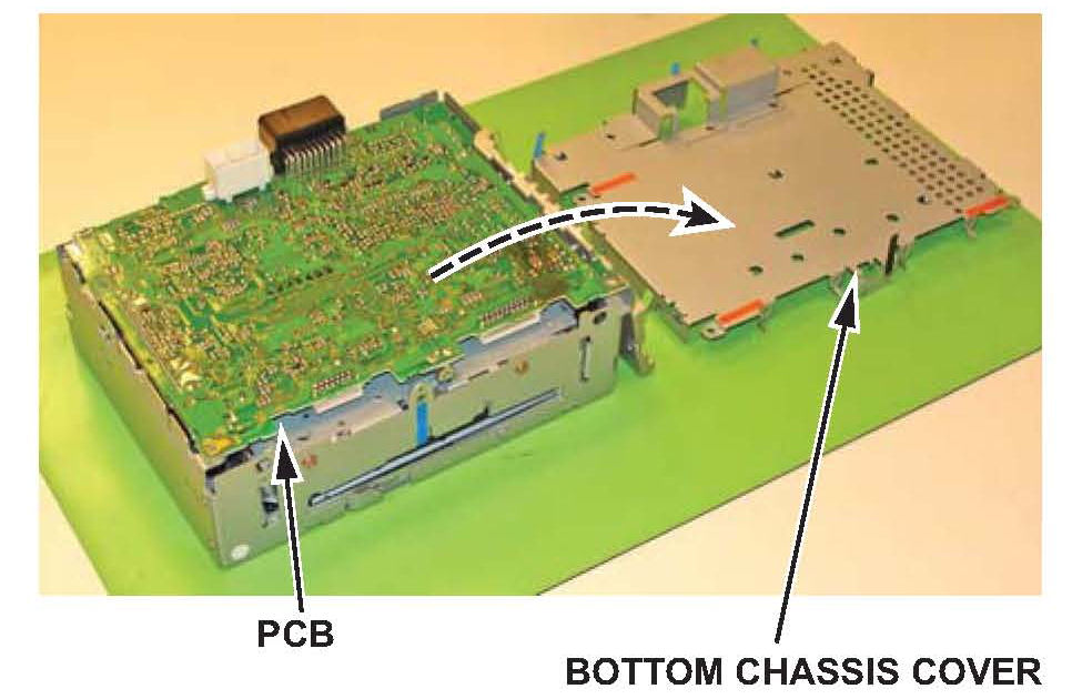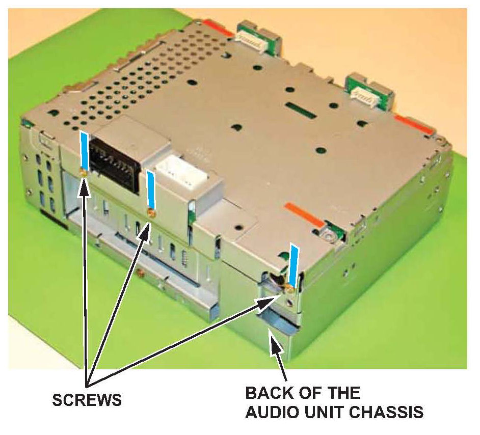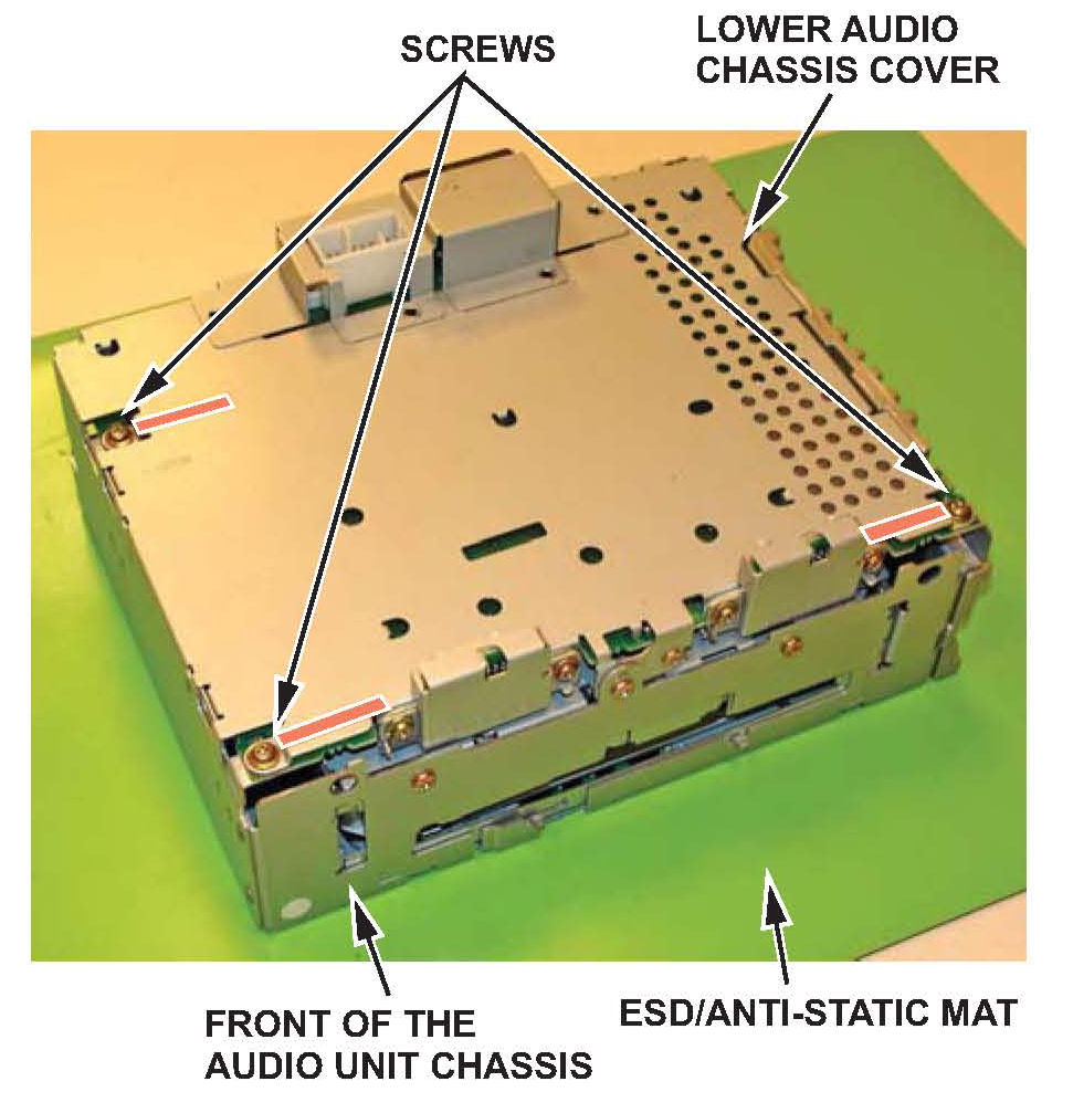 ^ If there are any problems with the audio unit or the HVAC controls, recheck all connections that were disconnected during the repair, including the ribbon cable to the PCB. If the radio still does not function correctly, refer to Service Bulletin 06-001, Audio, Navigation, and RES Unit In-Warranty Exchange, and Audio and DVD Player Out-of-Warranty Repair, for audio unit replacement information.