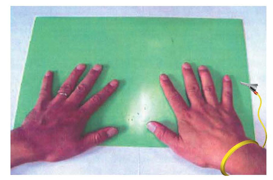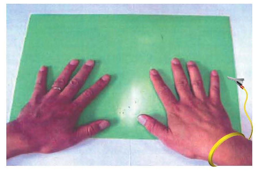 2. Place the audio unit on the ESD/anti-static mat. Then attach the wrist strap around one of your wrists, and attach the alligator clip to the ESD mat.