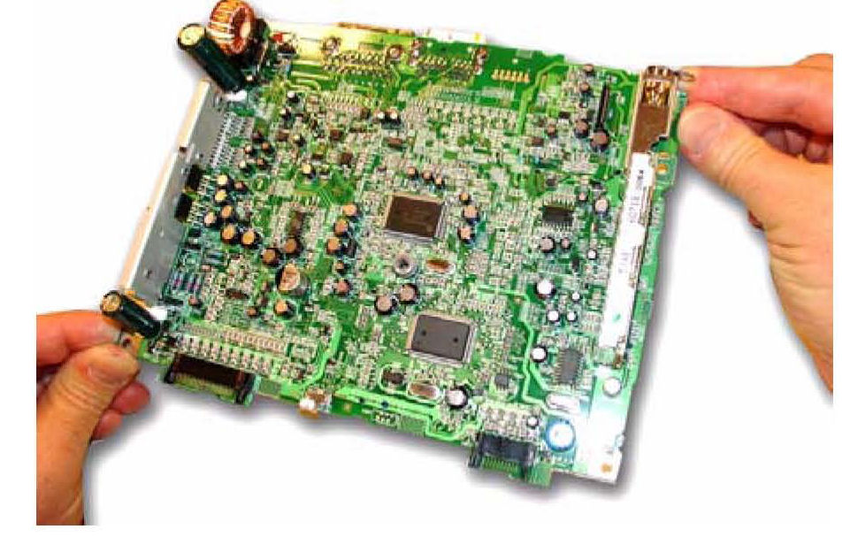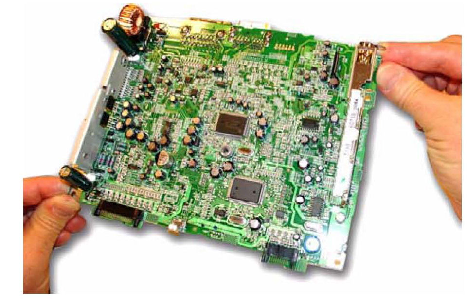 10. Carefully lift the PCB (printed circuit board), touching only the edges as shown.